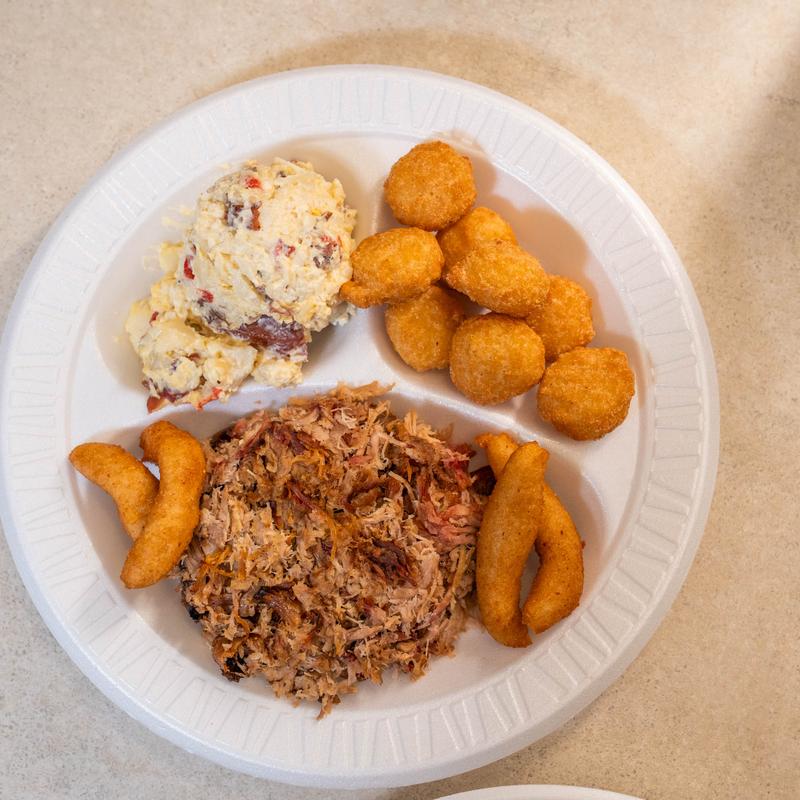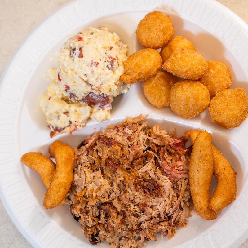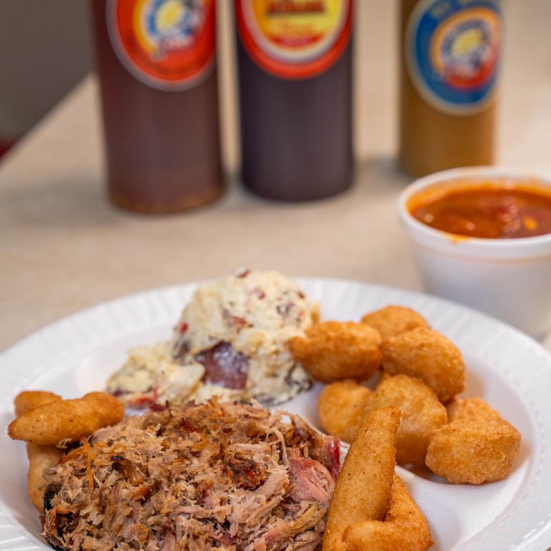You can order online from The Bar-B-Que House and enjoy classic dishes like our Hickory Smoked Chopped BBQ Pork, tender ½ Chicken, or Texas-Style Brisket Plate. You can choose from a variety of sides and hush puppies to go with any of our 5.